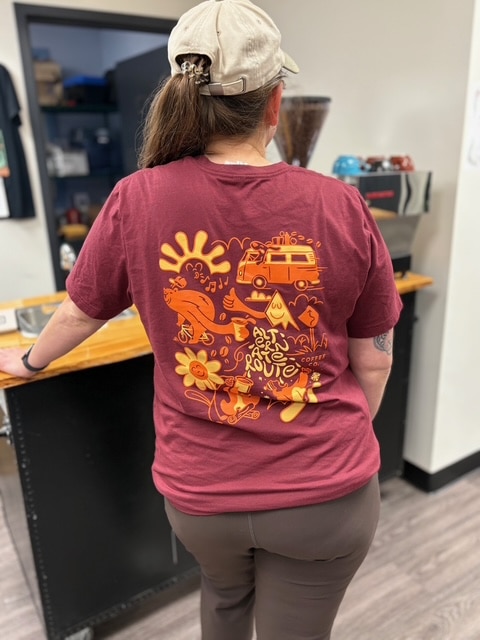 Our newest Alternate Route Coffee Co. tee is here! This design features vibrant, adventure-inspired design created by talented local artist Mike Lundy and printed with care by Black and Whyte Screen Printing. The artwork brings together coffee, nature, and road-trip vibes in a bold retro palette that’s perfect for all the wander-lovers and caffeine-seekers. Cozy, stylish, and proudly supporting local creativity. This tee is ready for the open road (or your next coffee run!).